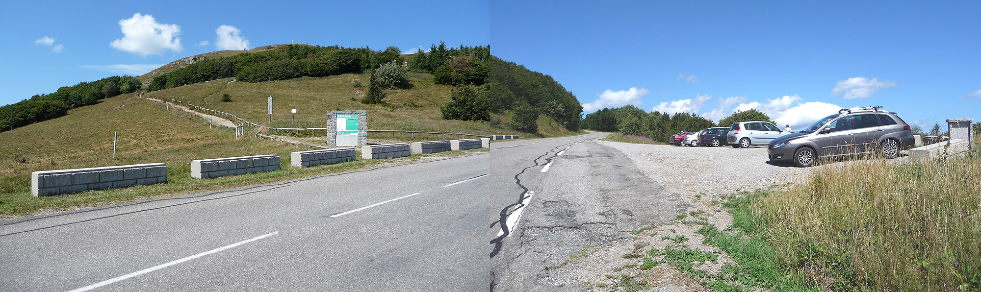 Auf der Südrampe, wenige Kilometer vor erreichen der Passhöhe, taucht rechts der Straße ein kleiner Parkplatz auf. Der Wanderweg links führt direkt zur Radaranlage, die aus der Nähe begutachtet werden kann.