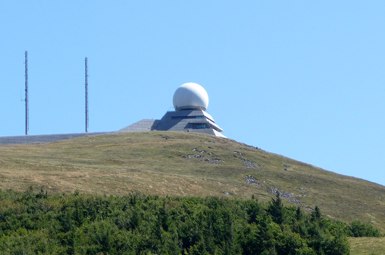 Blick aus westlicher Richtung auf die Radarstation auf dem höchsten Berg der Vogesen, dem
