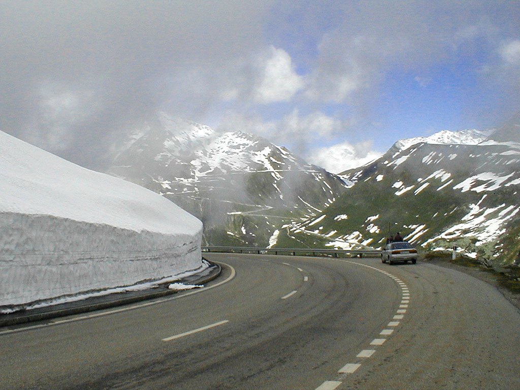 -Südflanke, die Passspitze liegt hinter dem Betrachter. In der Bildmitte ist die Westrampe des