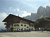 Die Passhöhe bietet gleich mehrere Hotels, und einen herrlichen Ausblick auf das riesige Felsmassiv der Sella.
