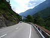 Jedoch hat alles irgendwann ein Ende, das letzte Drittel wird auf asphaltierter Straße gefahren. Es kommen zwar noch ein paar Windungen, aber nichts aufregendes mehr. Dort kann eher die Aussicht ins Tal genossen werden. Im Blick ist der weiter nach Süden führende Bergeinschnitt, und die breite Straße der neuen Gotthard-Piste.