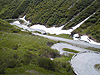 Im Süden verzweigen beide Strecken in freiem Gelände an einer großen Kreuzung. Gleich an der Ecke steht eine Militärkaserne die von oben gut zu erkennen ist. Wer an der Kreuzung dem blauen Schild folgt und links abbiegt, landet auf der neuen und breit ausgebauten Passstraße, die innerhalb weniger Fahrminuten auf die Passhöhe führt.