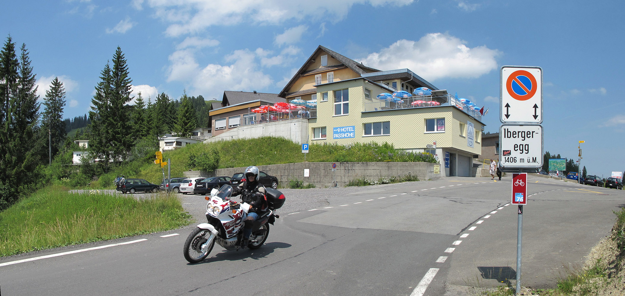 Blick auf das Restaurant auf der Passhöhe, die Blickrichtung ist Nord-Westen.