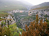 Als letztes seien noch die Balcons de la Mescla zu erwähnen. Sie bezeichnen einen Aussichtspunkt, von dem aus der hintere Teil der Schlucht mit am schönsten zu sehen ist, kurz bevor sich die Straße in die waldige Landschaft verabschiedet. Die Stelle selbst ist leicht zu erkennen, da plötzlich viele Fahrzeuge links und rechts stehen. Obwohl ich zweimal dort war, habe ich nicht angehalten und somit auch keine Bilder ergattern können. Das Bild wurde vom gegenüberliegenden Collet Barris aufgenommen, bessere Bilder werde ich frühestens 2012 zeigen können.