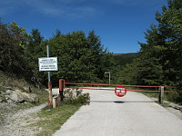 Ein etwas weiter oben angelegter Parkplatz ist ebenfalls eine Sackgasse. Per Schranke ist die nördlich um den See führende Schotterpiste gesperrt, nur für Fußgänger ist der Durchgang erlaubt. Sehr Schade, bin ich doch wegen der großen und geschotterten Runde überhaupt erst diese Strecke angegangen. Auf meinen Karten war von der Streckensperrung nichts zu sehen, auch auf der Strecke war die Ausschilderung nicht eindeutig. Wie dem auch sei, für Motorradfahrer die Runde ist keine Runde sondern besteht nur aus zwei Stichstraßen, die Befahrung der östlichen Strecke habe ich dezent gestrichen.