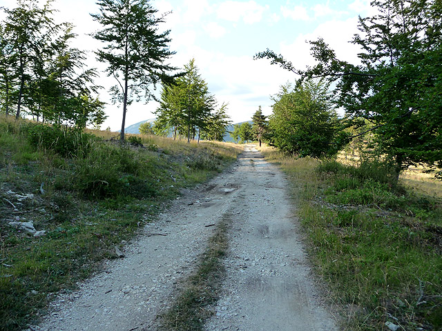 Auf der höchsten Stelle der Iscle-Nordrampe (die Passhöhe liegt etwas tiefer) wird der Wald lichter und man sieht wieder mehr von der Landschaft.