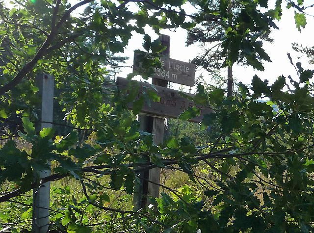 Etwas versteckt zwischen den Bäumen/Bäumchen, findet man auch am Col de l'Iscle ein Passschild.