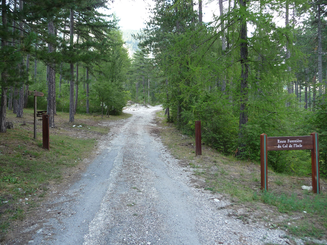 Die ersten Meter der Iscles-Südrampe. In Sichtweite fängt bereits der schwere Schotterbelag an, hinter einem befindet sich die bestens ausgebaute Ostrampe des Col de Toutes Aures.