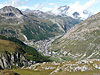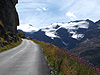 Und die Aussicht wird noch schöner, denn hier oben sind immer weiß bedeckte Berge zu sehen. Wer dort als Amateur-Fotograf bei gutem Wetter unterwegs ist, findet bestimmt viele (viel zu viele) Stellen für einen Schnappschuß. Die Passhöhe ist eine der größeren. Riesen Parkplatz für Autos, Busse und Motorräder. 2008 waren dort oben tatsächlich mindestens soviele Wohnmobile wie Motorräder, kaum zu glauben. Dort oben lässt sich zwar gut die Aussicht genießen, wer aber auf einem Cappuccino und/oder ein Eis spekuliert hat, wird entäuscht.