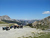 Aber irgendwann kommt die Passhöhe dann doch. Sie wird von einem Obelisken markiert, hat einen großen Parkplatz und bietet eine tolle Aussicht.