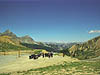 Zu Beginn der Südrampe fährt man noch durch offenes Gelände, die Straße führt meist ohne große Schlenker geradeaus. Was mir dort mehr zufällig auffiel: rechts und links ist es ungewöhnlich bunt! Wenn man zur richtigen Jahreszeit fährt, blühen auf den Wiesen ungewöhnlich viele Blumen. Mal ist es nur ein kleines Fleckchen, mal eine ganze Wiese. Farben wie Gelb und Violett sind mir an keinem anderen Pass dermaßen aufgefallen wie im unteren Teil der Izoard Südseite.