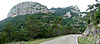 Auch die schönste Passfahrt ist einmal zuende, die letzten Meter geht es gemütlich bis zur Mündung auf der Hauptstraße C-14 zwischen Organyà und Coll de Nargo. Dort verabschiedet sich der Col de Jou frei nach seinem Charakter mit einem breiten und hohen Felsmassiv, das nur mit einem Panoramafoto aus mehreren Weitwinkel-Einzelbildern festgehalten werden kann.