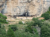 Wer genau hinschaut kann an oder in den Felsen Bunker, Behausungen oder auch Grotten ausmachen, von denen sich letztere als kleine dunkele Löcher aus dem hellen Felsgestein hervorheben.