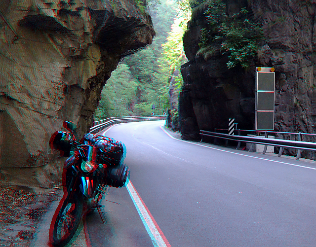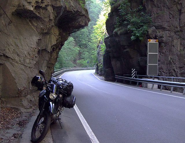 Eine der Engstellen in der Schlucht, die im unteren Teil der Westrampe durchfahren werden will. Hinter der Rechtskurve geht es in einen Tunnel, der 3 Kilometer lang ist und bis zum Ende der Westrampe reicht.