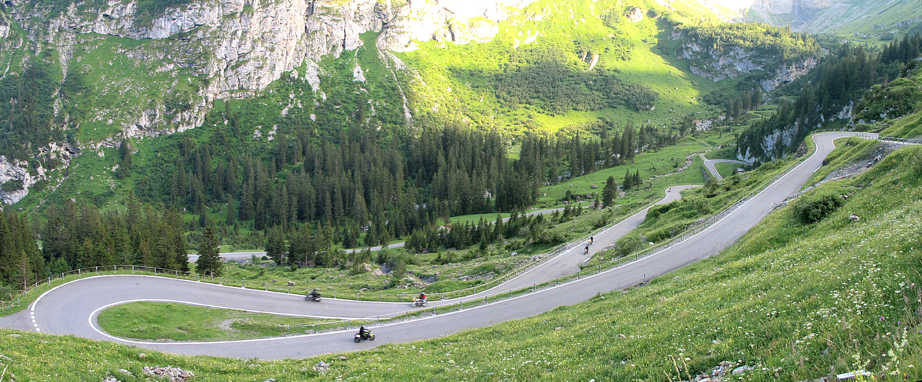 Sicht auf ein paar der Kehren, die unterhalb der Passhöhe auf der Ostseite gefahren werden wollen.