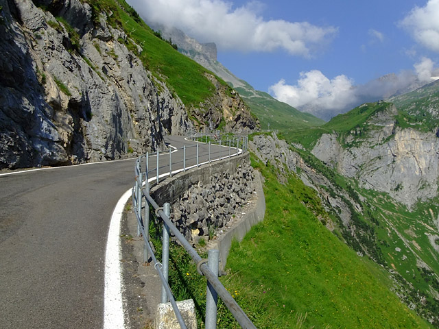 Im oberen Teil der Westrampe geht es zwischen Schluchtwand und Abgrund entlang.