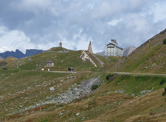 Die französische Passhöhe des kleinen St. Bernhard, fotografiert ein paar Kurven unterhalb der Passhöhe.
