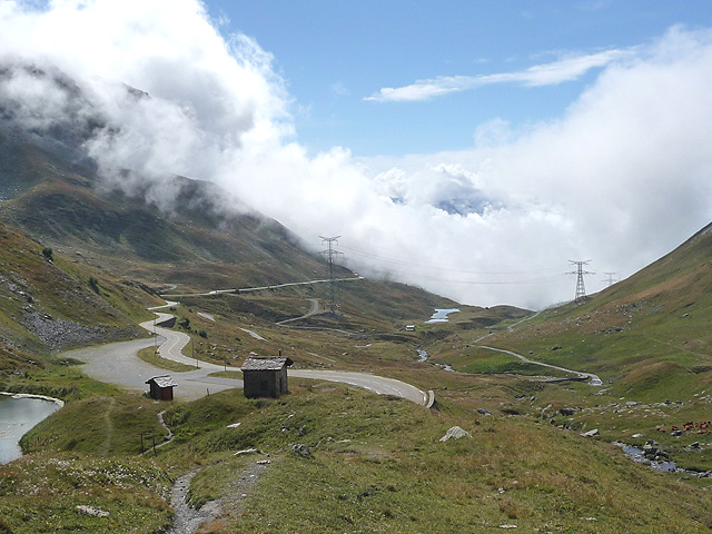 Die letzten Meter der Südrampe. Gegen Ende schlängelt sich diese an den sanft abfallenden Berghängen entlang.