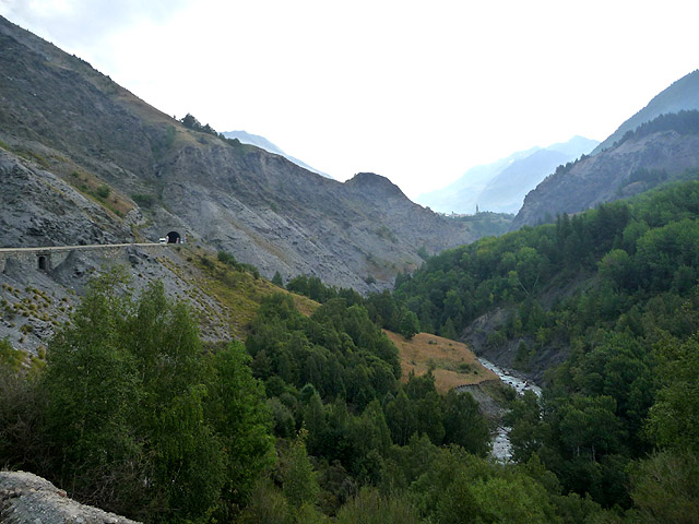 Östlich von La Grave ist die Schlucht enger als im oberen Teil. Die Umgebung wird schroffer und felsiger, von den sanften grünen Wiesen in der Nähe der Passhöhe nichts mehr zu sehen.