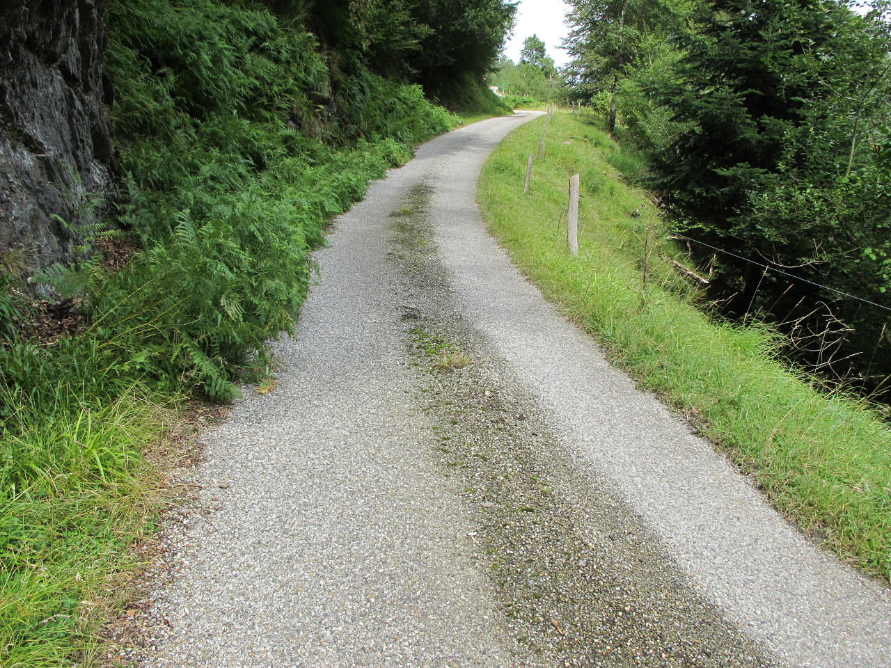Über viele Kilometer wächst mitten auf der Straße Gras und Moos. Zwischen den Pflänzchen können sich Split und kleine Äste sammeln, daher sollte besonders in Kurven darauf geachtet werden, den Mittelstreifen nicht oder nur sehr vorsichtig zu überfahren.