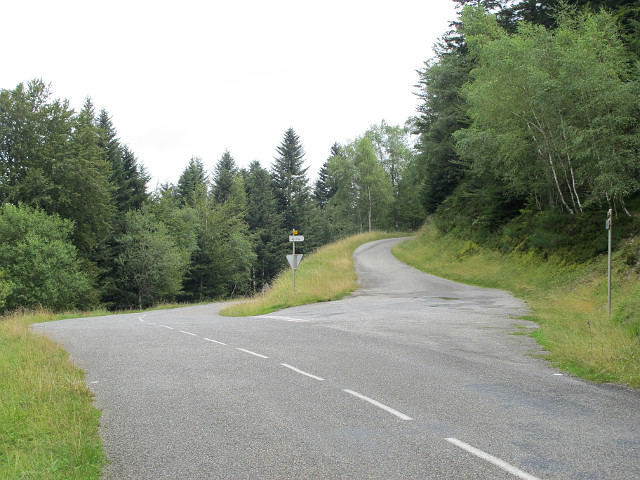 Die Einfahrt auf die Westrampe ist unscheinbar und kann leicht übersehen werden, nur die zwei kleinen Schilder in der Bildmitte verweisen auf den Legrillou. Links geht es auf der Hauptstraße weiter zum Marrous(i).