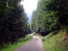 Die letzten zwei Kilometer sind etwas offener, der Wald nicht mehr ganz so dicht und daher lichtdurchlässiger. Im Jahr 2013 gabe es in dem Bereich Waldarbeiten, als Resultat war die Straße sehr erdig, dreckig und rutschig, auch ohne den grasbewachsenen Mittelstreifen.