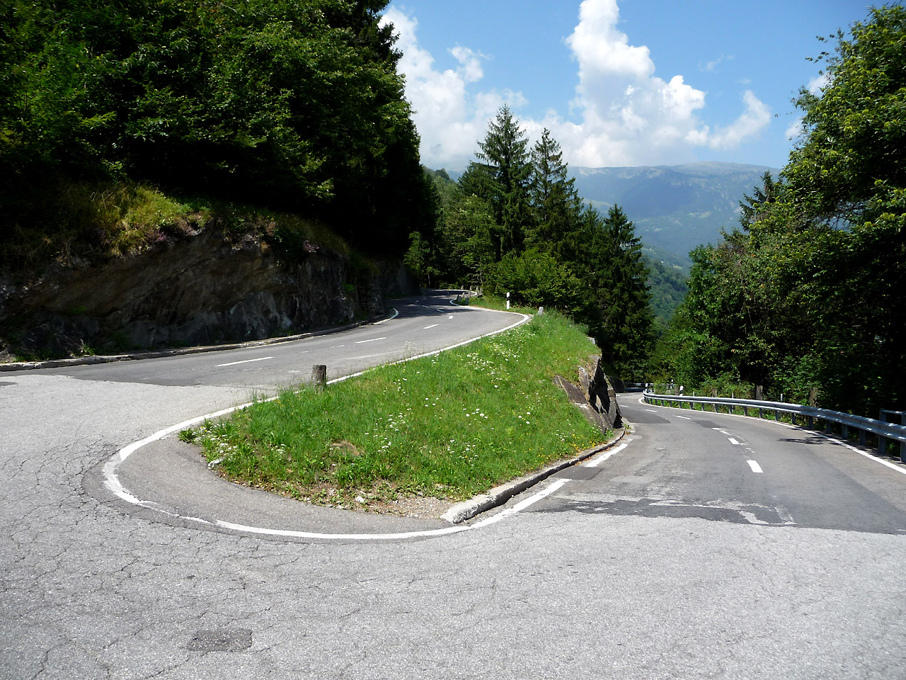 Westlich der Lukmanier-Südrampe gibt es eine nette Umfahrungsstrecke hinauf nach Leontica, die schön viele Kehren zu bieten hat. Der Belag ist nicht immer der Beste, trotzdem lassen sich die tiefe Kurvenlagen genießen.