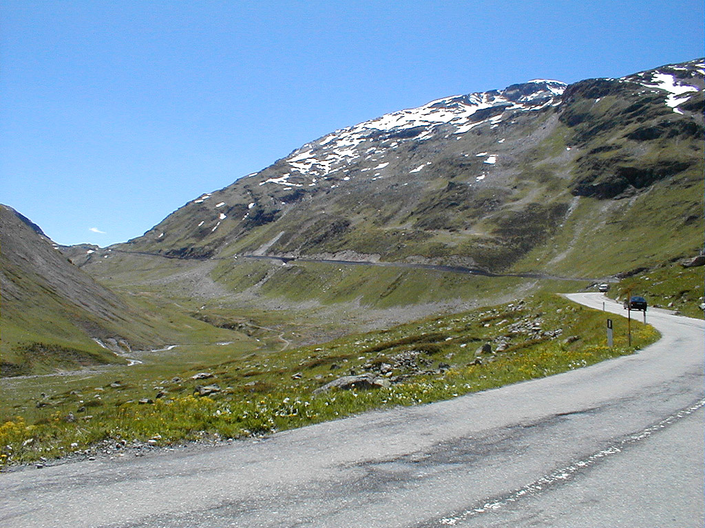 Links oben ist die Passhöhe zu erkennen, der Blick geht Richtung Süden.