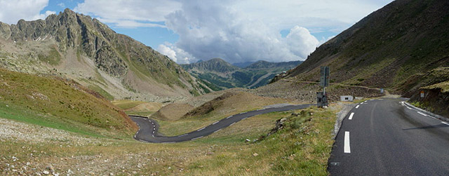 Blick von der Passhöhe aus auf die ersten Meter der Südrampe.