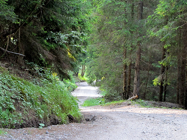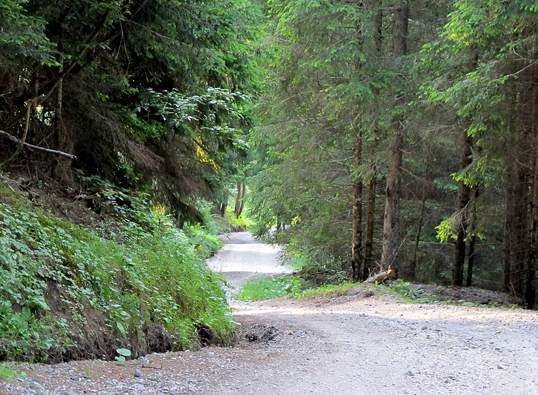 Blick bergab in die waldige Umgebung im unteren Bereich der Nordrampe.