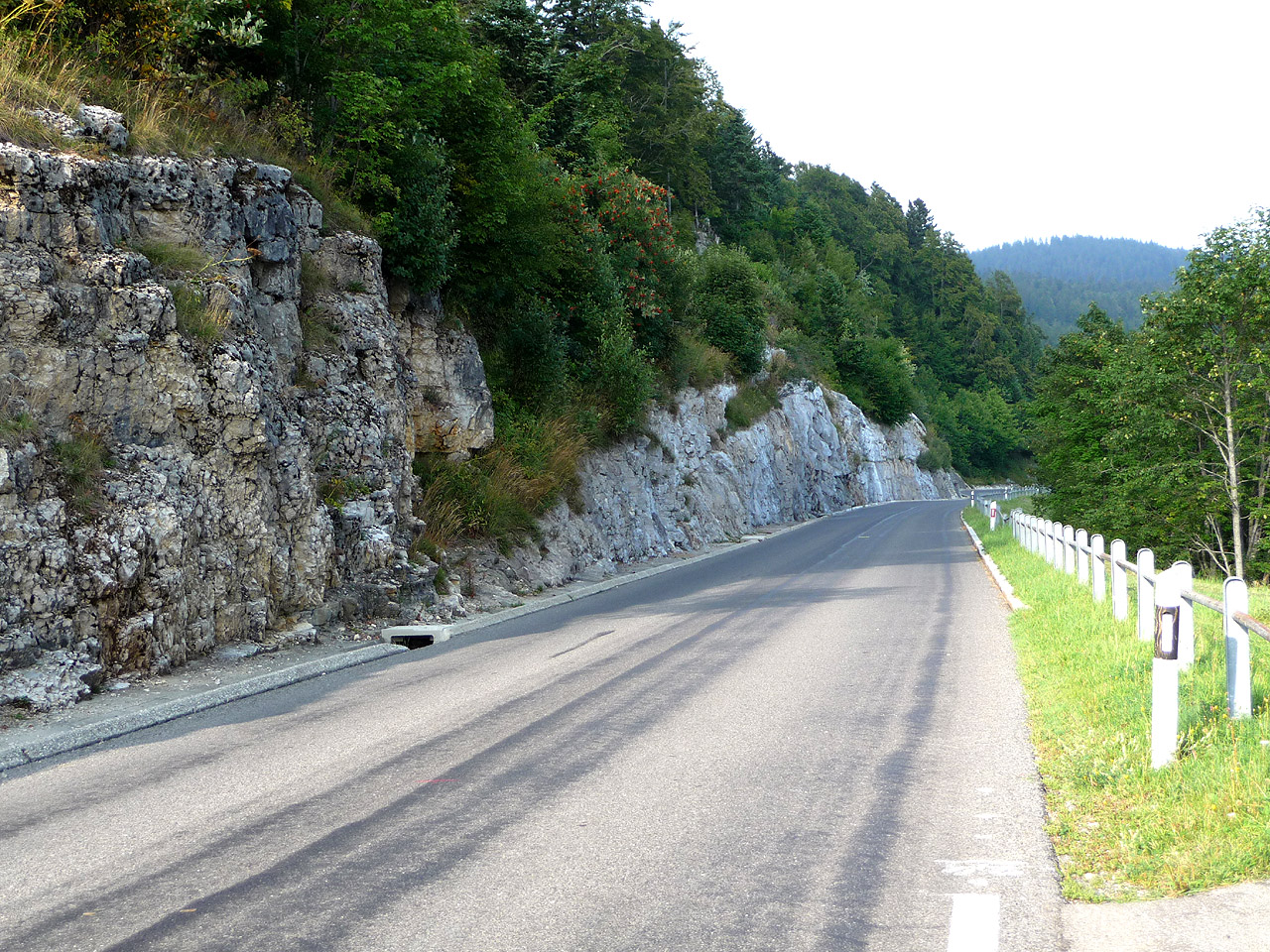 Im oberen Teil der Ostrampe fährt man für kurze Zeit an einer Felswand entlang.