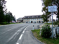 Die Passhöhe wird auf einer weiten Rechtskurve überquert, ein großes Hotel und ein dementsprechender Parkplatz sind auf ihr zu finden.