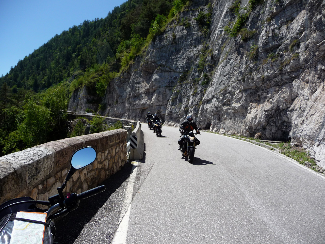 In dem knochigen Mittelteil der Ostrampe ist die Straße hart an den Fels gebaut, viele schlecht einsehbare Stellen erfordern vorausschauendes Fahren.