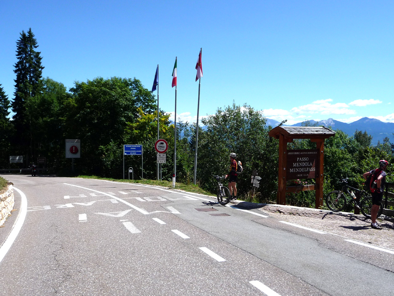 Das östliche Passschild steht zwar nicht an der höchsten Stelle, dafür aber an der ruhigsten. Links geht es auf die schöne Ostrampe, im Rücken des Betrachters liegt das kleine Dorf auf der Passhöhe.
