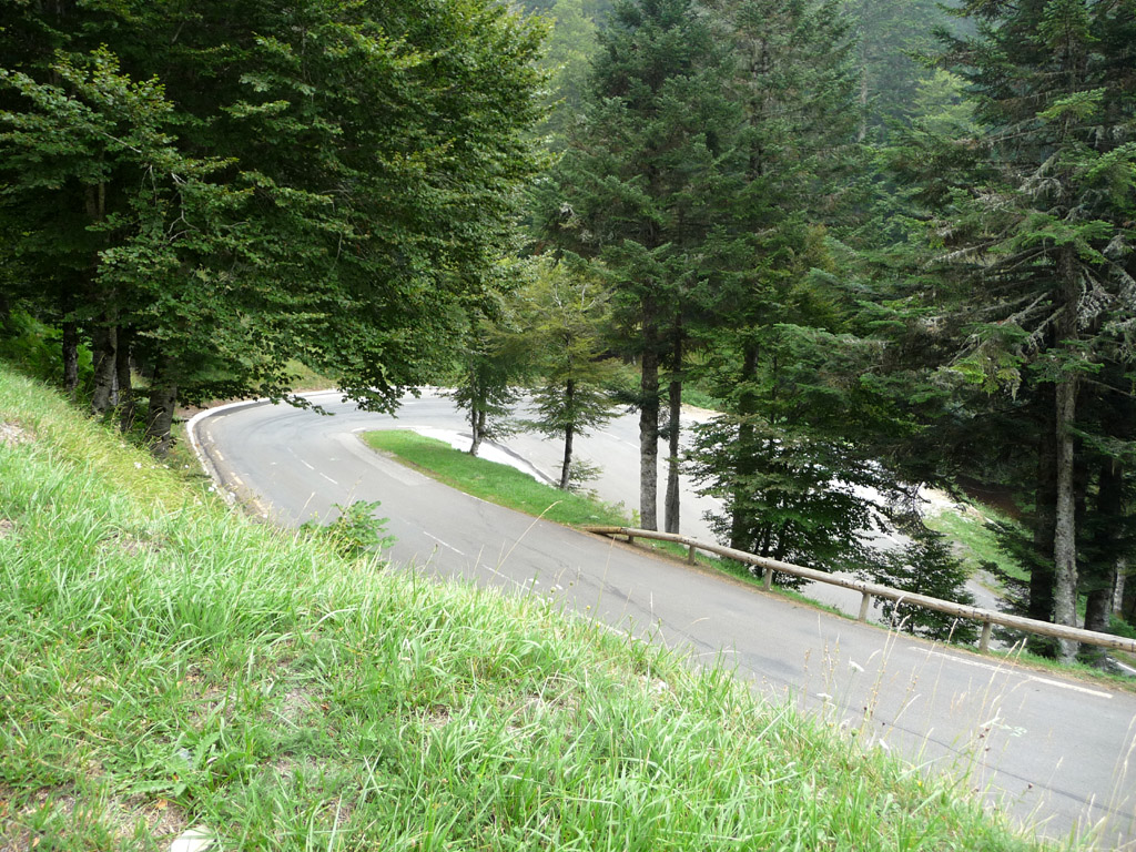 Im oberen und mittleren Teil der Westrampe ist die Straße 2 Fahrspuren breit, in einigen sehr ausladenden Kehren sogar noch breiter, für Busse und LKWs geeignet.