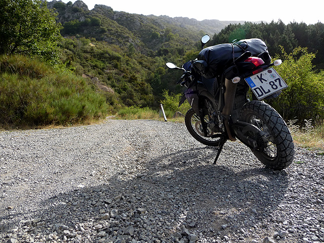 Unterer Teil der Auffahrt des Mont Chiran. Nach kurvigem Anfang kommt eine längere Ausruh-Gerade, bevor im oberen Teil mehrere engere Kehren bewältigt werden müssen.
