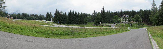 Das Bild wurde zwischen Hotel Enzo Moro und dem breit ausgebauten, unteren Teil der Ostrampe aufgenommen. Links der Bildmitte liegt der riesige Parkplatz, der auf Luftaufnahmen den Eindruck eines Flugfeldes oder ehemaligen Flugfeldes macht.