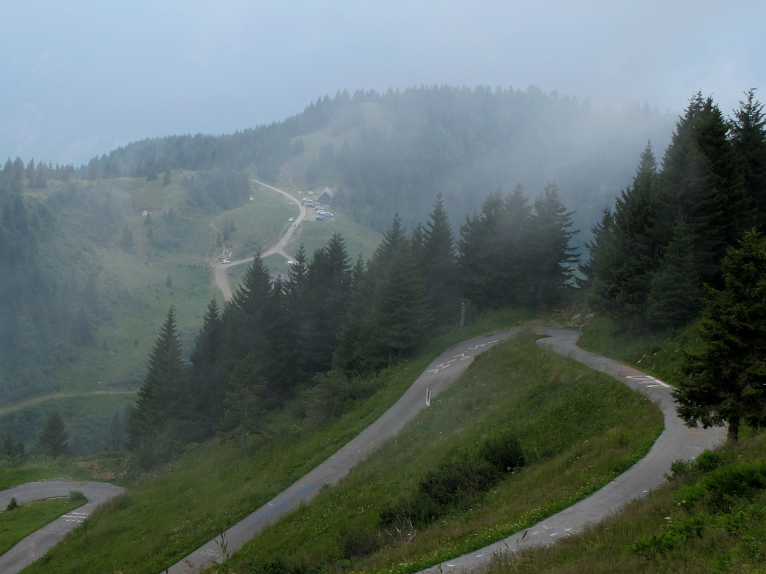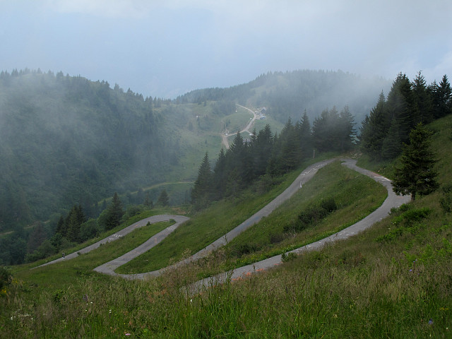 Zwischen den Tunneln und der Passhöhe werden noch ein paar Kehren im Freien gefahren,