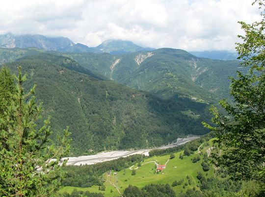 Von der Nordrampe aus kann an manchen Stellen in das sommerlich fast ausgetrocknete Flußbett des