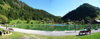 Dafür macht der kleine Lac de Morgins was her, der nicht nur romantisch-nett aussieht, sondern auch ein paar Bänke in Parkplatznähe bereit hält. Für Selbstversorger ist die Stelle gut für eine ruhige Pause geeignet, sogar die Motorräder können in Sichtweite abgestellt werden. Wer es noch ruhiger mag, kann den geschotterten Feldweg reinfahren und dort am Straßenrand nach weiteren Bänken Ausschau halten.