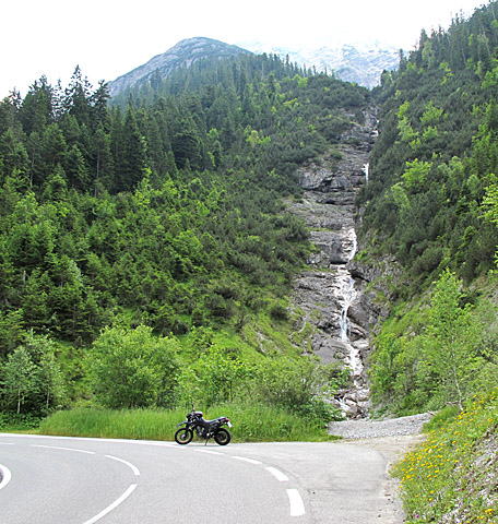 Von Westen nach Osten fahrend taucht hinter einer Rechtskurve unvermittelt dieser schöne Wasserfall auf.
