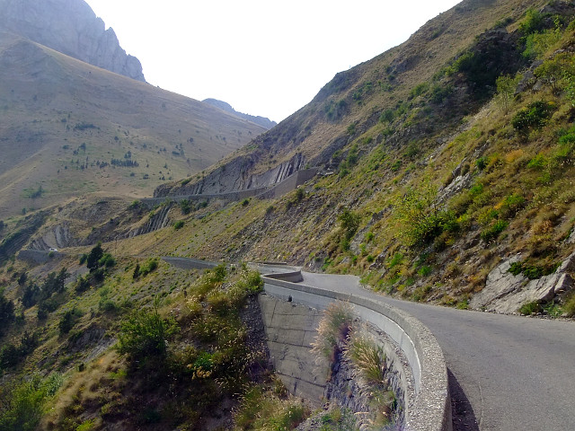 Die letzten 2 Kehren und die Straße dazwischen haben ein bisschen vom Stilfser Joch. Nur noch die Strecke die man sehen kann, eine Kurve, 200 Meter geradeaus, und die Passhöhe ist erreicht. Links hat man freie Talsicht.