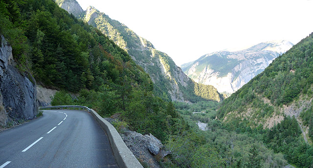 Im unteren Teil der Nordrampe führt die Straße durch eine Schlucht, der Rest der Passfahrt geht eher durch weichere Landschaften.