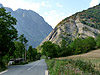 Etwas Vorsicht ist da geboten, denn an manchen Stellen gibt es zwischen Felswand und Straße eine Regenrinne, die gut 20 Zentimeter tiefer liegt als der Asphalt. Wer da reingerät liegt auf der Schnüss, was mir fast passiert wäre. Im gut kurvigen Bereich kam mir in einer links-rechts-links-Kombination ein LKW entgegen, ich war flott unterwegs, und der Bereich zwischen Helm-an-LKW und Reifen-in-Regenrinne war sehr sehr schmal.
