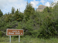 Die Passhöhe besteht nur aus einem Parkplatz, mehrere Wanderwege zweigen in die Botanik ab. Der Oroel ist zwar auch zu sehen, jedoch etwas hinter Bäumen versteckt.