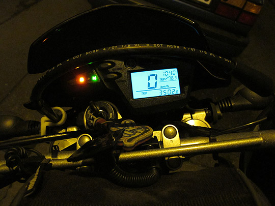 Links (in Kapitalermotorschaden-Rot) ist die Tankwarnung zu erkennen, bin somit auf Reserve in Köln eingeflogen. Bei der Tankung ein paar Tage später stellte sich erst heraus, wie knapp das eigentlich war. Getankt habe ich 14,5 Liter, in den XT-Tank passen 15 Liter! Wäre der Heimweg 10 Kilometer länger gewesen, wäre ich liegengeblieben.