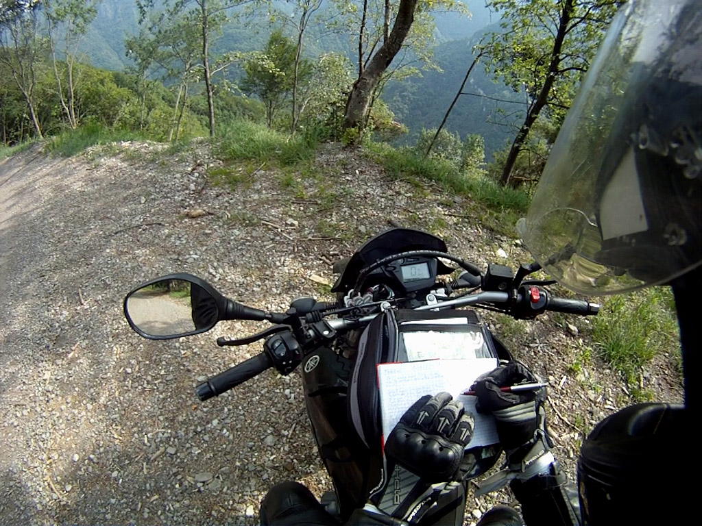 Da hat mich meine GoPro-Helmkamera erwischt, wie ich gerade Infos über die süß geschotterte Südrampe des Cocca notiere. Täglich Brot, hat man ein Gedächnis wie ein Sieb und will trotzdem anständig über Pässe in Alpen und Pyrenäen berichten. Ohne das schwarz-rote Büchlein geht bei mir nix.
