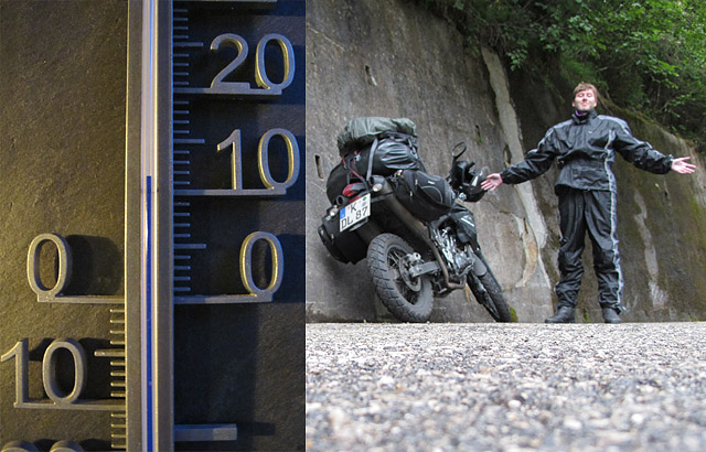Es war wirklich kein Jahr für stressfreie Mopedurlaube. 2 Wochen war ich unterwegs, fast an jedem Tag musste ich irgendwann in die Regenkombi steigen. Während der 2. Woche konnte ich zudem von Temperaturen jenseits der 30 Grad nur träumen. Mitte Juli, wohlgemerkt!