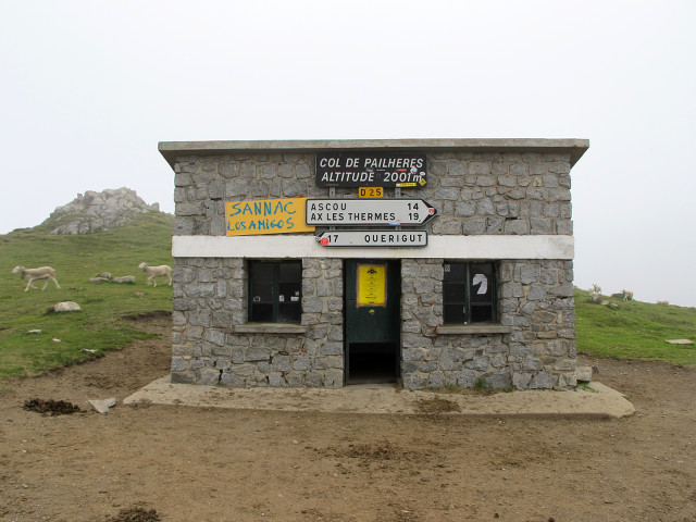 Auf der Passhöhe gibt es einen großen Parkplatz und eben diese verlassene Hütte.
