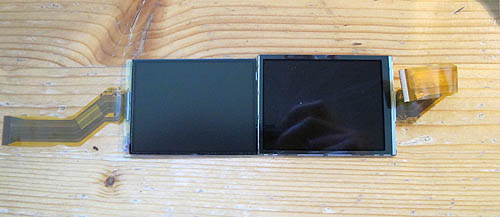 Reparaturanleitung von einer anderen Kamera) zu sehen ist. Hmmm, nun gut, noch etwas mehr Piddelei bei der jede Menge schief gehen kann. Also das alte Display am nächsten Abend bei schlechter Beleuchtung (keine gute Idee!) aus der Halterung knibbeln ...